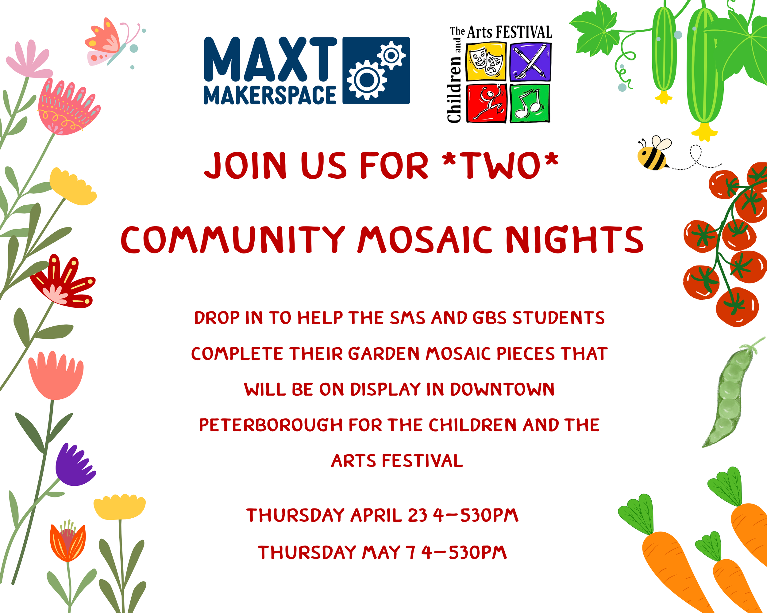 These nights are to help complete the design, grout and finish the project for display. SMS and GBS students, their families and members of the public are invited to create!